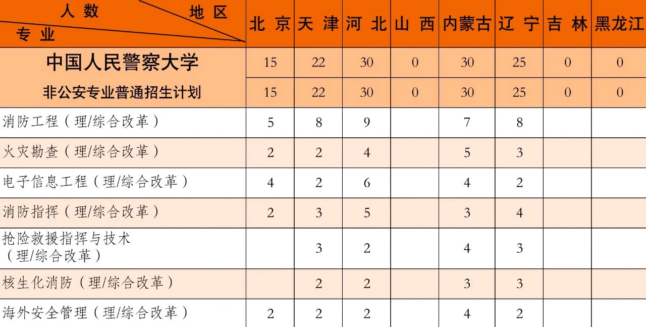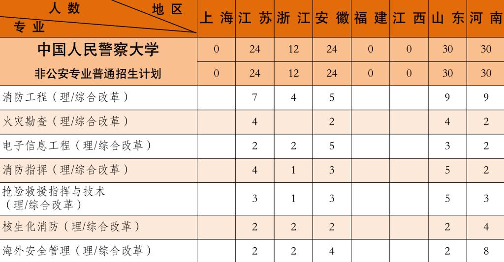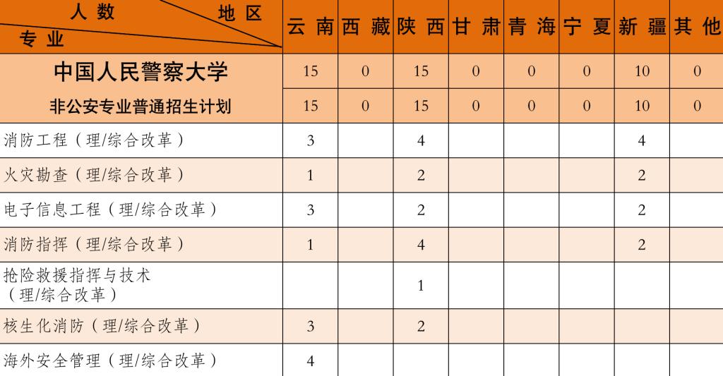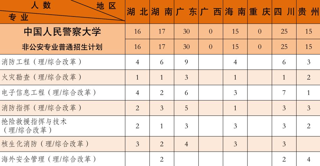 2021年学校本科招生共17个专业,公安专业10个,非公安专业7个