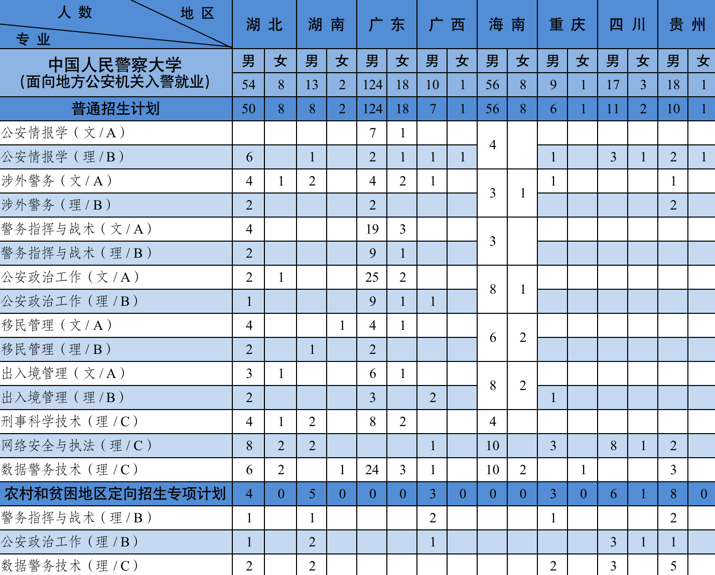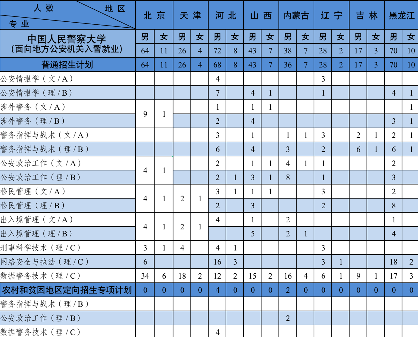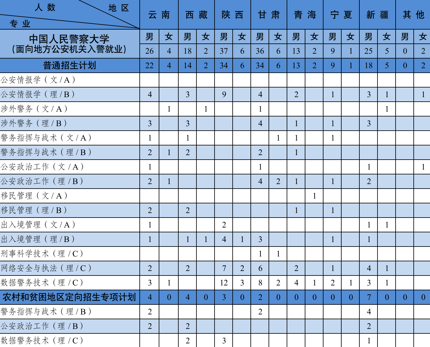 (面向地方公安机关入警就业1148人,面向移民管理机构入警就业412人,面向铁路公安机关入警就业240人)