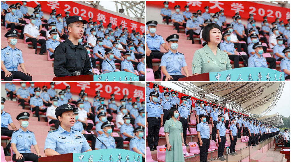 公安政治学院一队李尚轩同学代表2020级全体新生发言,他郑重承诺:将认真学习文化知识,坚定理想信念,提升综合素质,锤炼实战能力,培育创新精神,涵养家国情怀,努力成为德才兼备、文武双全的共和国卫士,以实际行动为警大争光,为警徽添彩。