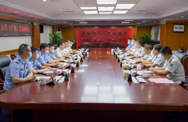 9月14日下午,广州校区潘慈平书记、刘金广主任一行到广州出入境边检总站与朱建敏政委进行座谈交流。广州总站蒋明祥副总站长等在家站领导、职能处室主要负责同志和校区相关业务处室负责同志参加座谈。