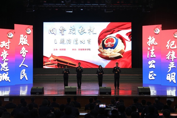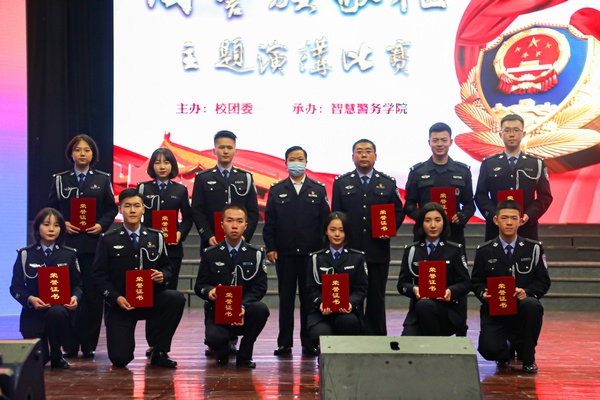 为认真学习宣传贯彻习近平总书记在中国人民警察队伍授旗仪式上的重要训词精神,落实公安部和学校党委关于“坚持政治建警、全面从严治警”教育整顿工作的部署要求,11月11日,由学校团委主办,智慧警务学院承办的“向警旗敬礼”主题演讲比赛决赛于学校礼堂成功举办,校长助理杨英明、各学院团委书记出席比赛。