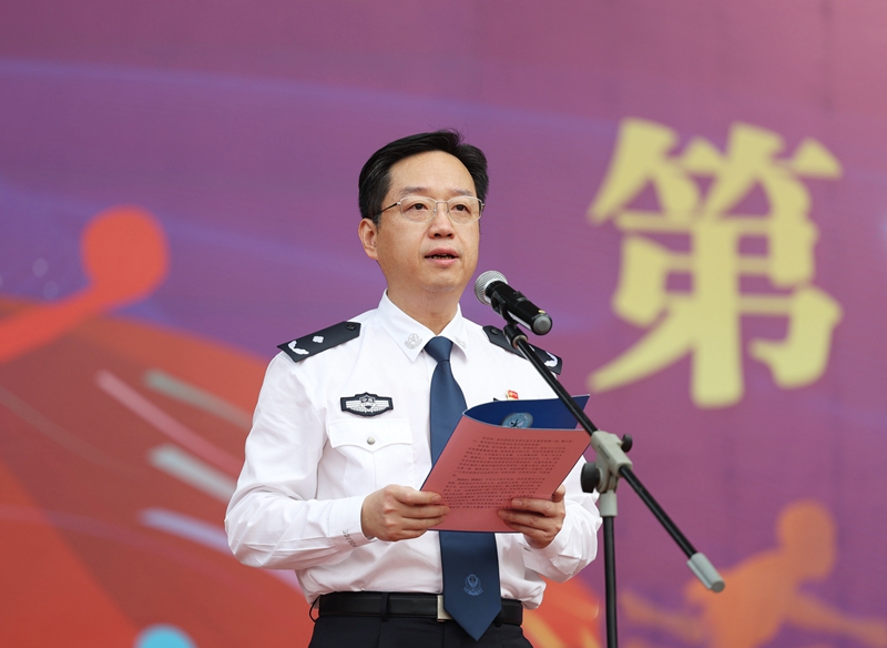 校区潘慈平书记致开幕辞,他代表校区党委、全体教职员工向所有参加本次运动会的运动员、裁判员表示诚挚的问候,向为筹备此次运动会付出辛勤努力的工作人员表示衷心的感谢。潘书记充分肯定了今年以来校区在国内合作办学、智慧警务建设、无人机教学培训、校园规划建设等各个领域迈出了坚实的步伐、取得了可喜的成绩,并代表校区党委向坚守在教育管理一线,戮力同心、恪尽职守的全体师生表示由衷的感谢。潘书记指出,校区历来重视文化和体育工作,大力推进文化育警、文化强警战略,开展了形式多样、健康向上、格调高雅的校园文化和体育活动。一年一度的运动会既是校区群众性体育活动开展成效的一次集中检阅,也是校区教职工精神风貌和综合素质的一次集中展示,更是大家欢聚一堂、增进交流、公平竞争、团结拼搏的一次盛会。他希望广大师生团结一致、齐心协力,赓续优良传统、永葆忠诚警魂、担当强校重任,把本届运动会办成一届开拓向前、续写忠诚的体育盛会,奋力开创广州校区更加美好的明天。