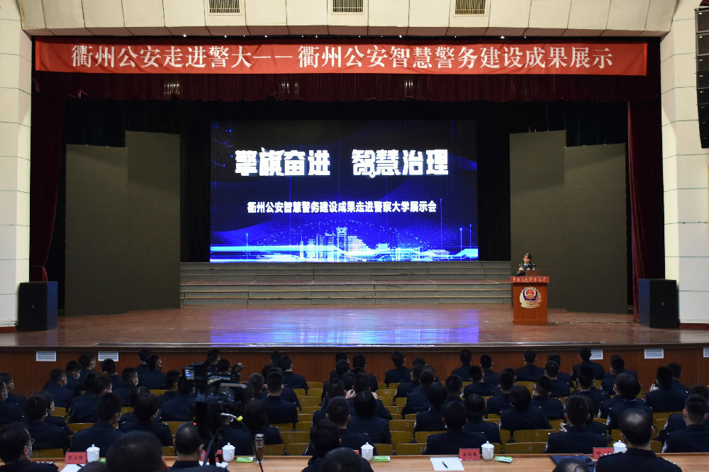 “衢州公安走进警大--衢州公安智慧警务建设成果展示”作为第四场“警察大学大讲堂”于30日下午在学校礼堂举办,校长马金旗、副校长房凌春、张立勋、刘义祥、潘清义,校长助理杨英明、谢朝阳和师生代表现场观摩了成果展示,副校长吴立志主持活动。广州校区观看视频直播。此次活动由智慧警务学院承办。