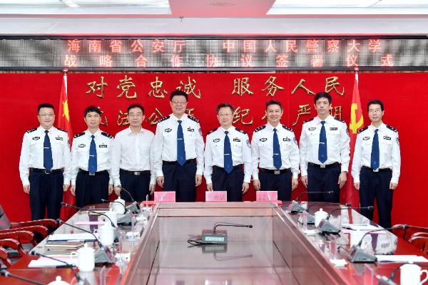 闫希军厅长代表海南省公安厅党委对警察大学一直以来给予海南公安工作的大力支持,表示衷心感谢。他指出,双方合作是贯彻落实习近平总书记重要训词精神和公安部党委改革强警、科技兴警战略部署的重大举措,对海南公安集聚各方智慧,加快推进公安工作整体提质增效,高质量、高标准服务海南自贸港建设具有重要意义。要坚持创新发展理念,以人才培养、素质强警为主线,充分发挥警察大学“理论高地”和海南省公安厅“自贸港公安工作实战前沿”的优势,在创新领域优势互补,在资源配置深度融合,在办学质量和实战水平实现合作共赢、共同提升,致力于打造公安校厅合作新典范。要共建合作发展格局,以服务自贸区(港)建设、理论探索为重点,以科技兴警、智慧新警务为引领,在打击海上走私犯罪等领域开展课题研究、深化人才培养,在制定符合自贸港标准的出入境管理服务政策等方面,强化科研攻关、推进系统建设,致力于培育教育资源竞争新优势。要突出重点领域合作,以服务“一带一路”高质量发展为重点,突出国际警务交流领域合作,共建“海南自由贸易港警务模式改革研究院”,培育产出更多高质量、前瞻性的科研成果,致力于构建国际警务交流新平台。