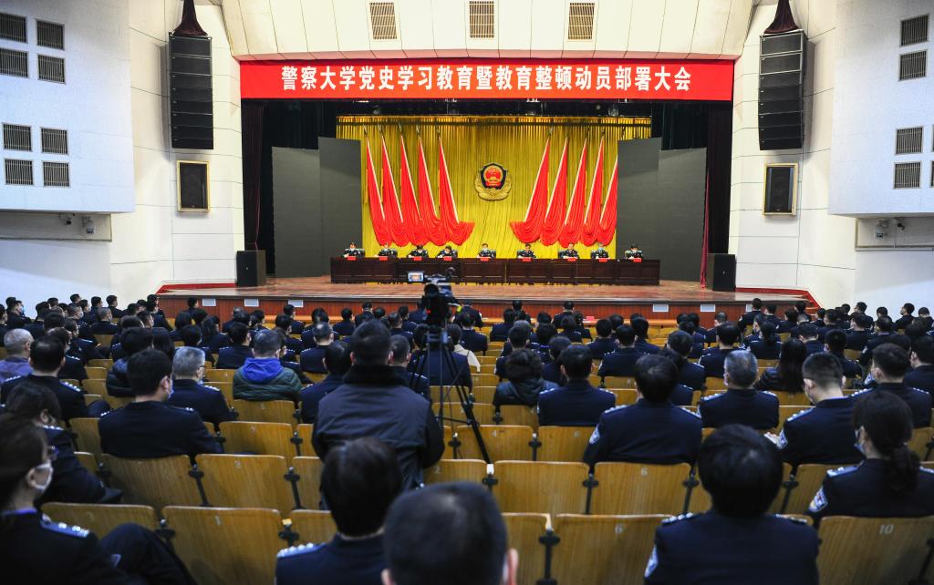 3月19日,警察大学召开党史学习教育暨教育整顿动员部署大会,深入学习贯彻习近平总书记关于党史学习教育重要讲话精神和加强政法队伍建设的重要指示精神,认真落实公安部党委关于党史学习教育和公安队伍教育整顿的部署要求。校党委书记牟玉昌对开展党史学习教育和教育整顿工作进行动员部署,校长马金旗主持会议,副校长张立勋宣读了《警察大学党史学习教育安排意见》。全校教职工参加会议。