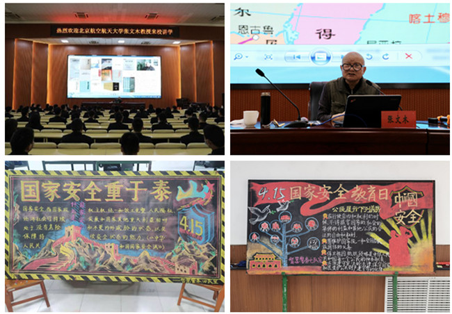 学校紧密围绕“践行总体国家安全观,统筹发展和安全,统筹传统安全和非传统安全,营造庆祝建党100周年良好氛围”主题,制定了警察大学《第六个全民国家安全教育日宣传教育活动工作方案》,印发了《关于组织开展2021年全民国家安全教育日宣传教育活动的通知》。校属各单位认真落实通知精神,细化宣传教育计划,积极开展动员部署,注重线上与线下相结合,通过开展丰富多彩的教育活动,全面提升师生国家安全防范意识。一是突出氛围营造,教学保障处、宣传处、图书馆分别在综合教学楼、办公楼前、图书馆等公共场所电子屏进行“维护国家安全人人有责”标语宣传;宣传处利用学校微信公众号开展了专题宣传。二是落实专题学习,以机关处室、教辅保障单位、教学办公室、教研室、学生中队为单位,通过多种形式开展了国家安全专题教育学习,不断增强政治、保密、科技、人工智能等方面安全防范意识。党委办公室开展了国家安全主题宣讲活动;科研处、团委组织集中观看了《国家安全宣传片》《没有硝烟的战争》等影片;智慧警务学院、特勤学院在校内开展了4•15国家安全教育日主题签名活动,制作了主题板报;警务指挥学院、侦查学院、警务装备技术学院、救援指挥学院组织师生专题学习了《宪法》《反恐怖主义法》等法律法规;公安政治学院组织学生中队开展了国家安全主题演讲和辩论赛。三是开展交流活动,移民管理学院结合国家安全学学科建设,举办了警察大学“国家安全学学科建设研讨与推进会”,邀请中国人民公安大学国家安全学院毛欣娟教授来校做国家安全学学科建设报告,就警察大学国家安全学科建设推进工作进行经验交流,并在超星平台推出了面向全国高校的《当代大学生国家安全教育》慕课,举办了《新时代的中美变局与世界前途》大讲堂,开展了出入境安全科普基地开放日活动。四是参加网络学习,组织师生认真收看“千万师生同上一堂国家安全教育课”主题公开课、首届全国高校学生国家安全素养展示活动和2021年浙江省“4•15”全民国家安全教育日大型文艺演出,积极参与全国高校学生国家安全知识线上竞答等活动。
