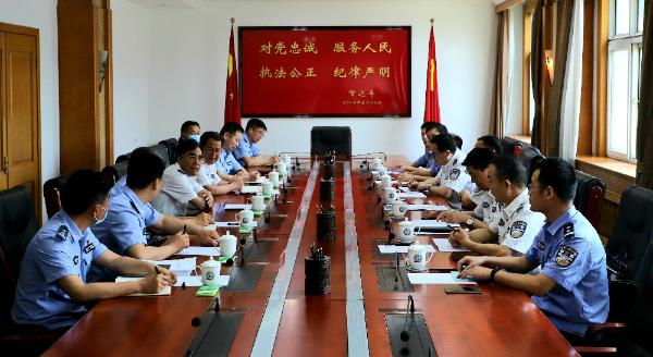 5月19日,江西警察学院院长袁志坚、副院长董洛民一行7人来校调研交流,校长马金旗、副校长杜旭宇与袁志坚院长一行开展座谈交流。