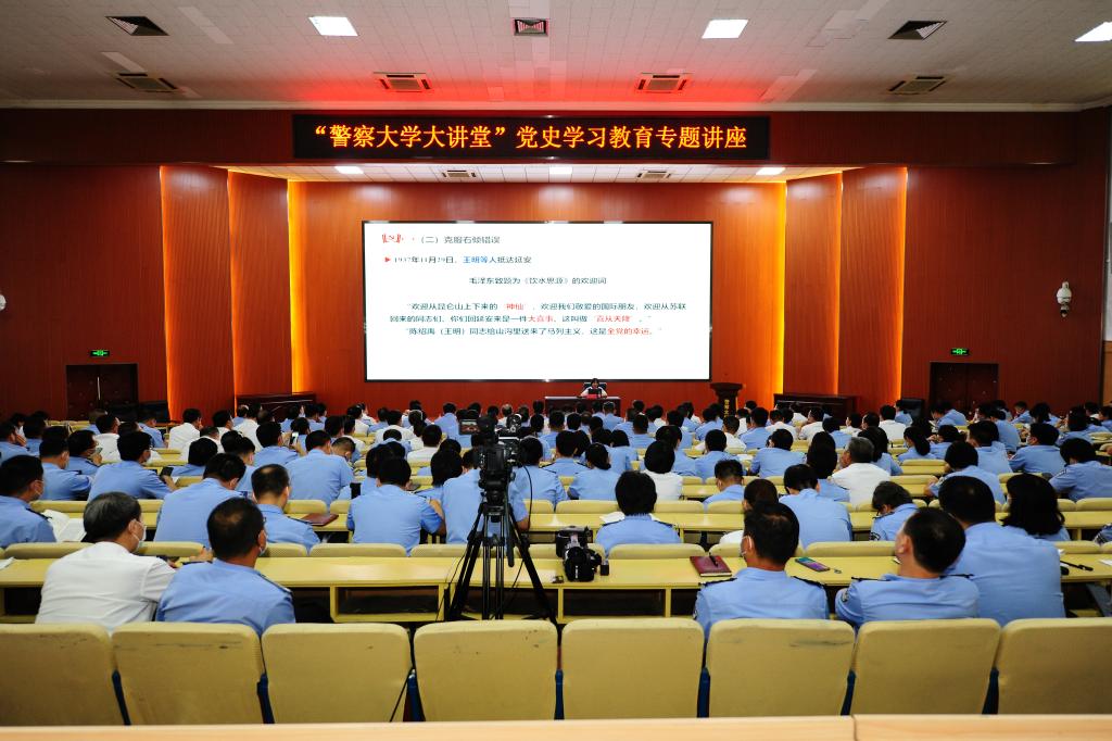 为深入推进学校党史学习教育走深走实,7月8日,“警察大学大讲堂”举办本学期第七场活动,公安政治学院公安党建教研室王鸿教授以“延安整风与党的建设伟大工程”为题,为学校党员干部作专题辅导报告,学校领导及干部教师在现场聆听授课,广州校区通过网络直播进行了收看。杜旭宇副校长主持报告会。
