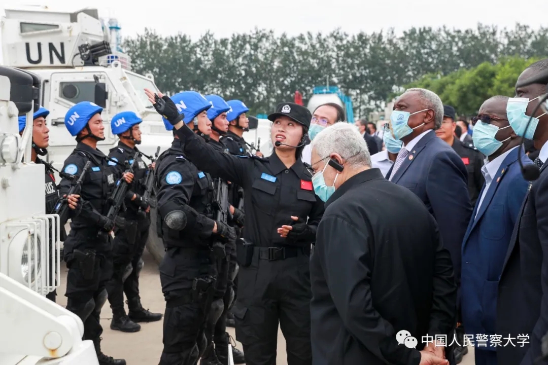 马金旗校长在致辞中介绍了警察大学、维和警察培训中心和国际执法合作的基本情况,深情讲述了和志虹、孙东兴、王晓静3名维和警察的感人事迹,剖析了他们逆行出征的根本所在——国家使命、人民情怀、和平愿望,以实际行动践行了“构建人类命运共同体”的庄严承诺,引发了使节们的强烈共鸣。