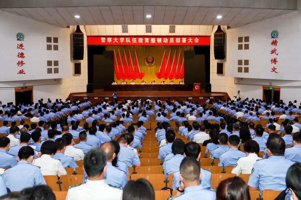 为全面贯彻落实党中央和公安部党委部署要求,深入推进队伍教育整顿工作走深走实,8月30日下午,警察大学召开全校教职工大会,对开展队伍教育整顿工作进行再动员再部署。党委书记牟玉昌作动员讲话,校长马金旗主持会议。全校教职工参加会议,广州校区通过会议直播系统同步参会。