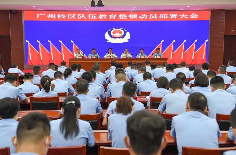 广州校区刘金广主任在主持会议时指出,要深刻领会动员部署会精神,认真抓好贯彻落实。要切实提高思想认识,把开展好队伍教育整顿作为培育清风正气、凝聚发展合力的一次党性教育和精神洗礼,铸牢忠诚警魂,打造铁一般的过硬队伍。要坚持问题导向,找准制度建设的薄弱点、找准排查整改的切入点、找准提质增效的发力点,提高教育整顿的针对性实效性。要注重统筹结合,把“治标”和“治本”统一起来,提炼做法、总结经验,把教育整顿的成果转化为推进校区转型发展的实效,打造忠诚干净担当的公安铁军。