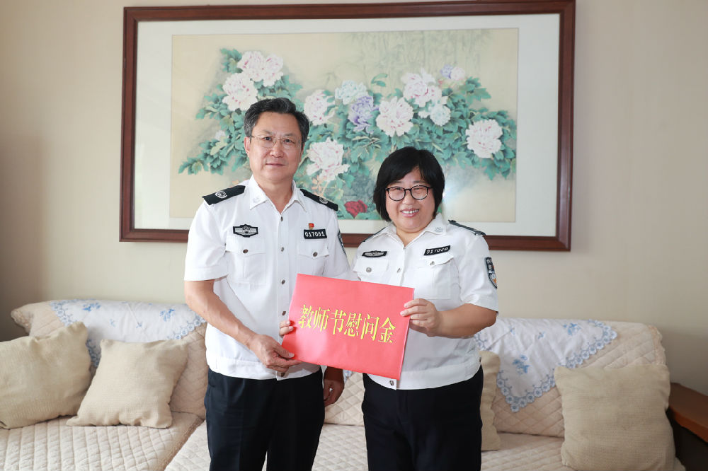 在全国第37个教师节来临之际,学校党委书记牟玉昌、校长马金旗分别于9月9日、10日,走访慰问了荣燕、刘长龙等6名教师代表,转达了公安部党委书记、部长赵克志同志和部党委对全校教职员工的节日问候,代表校党委向他们致以衷心的感谢和崇高的敬意。张立勋副校长和相关学院领导陪同慰问。