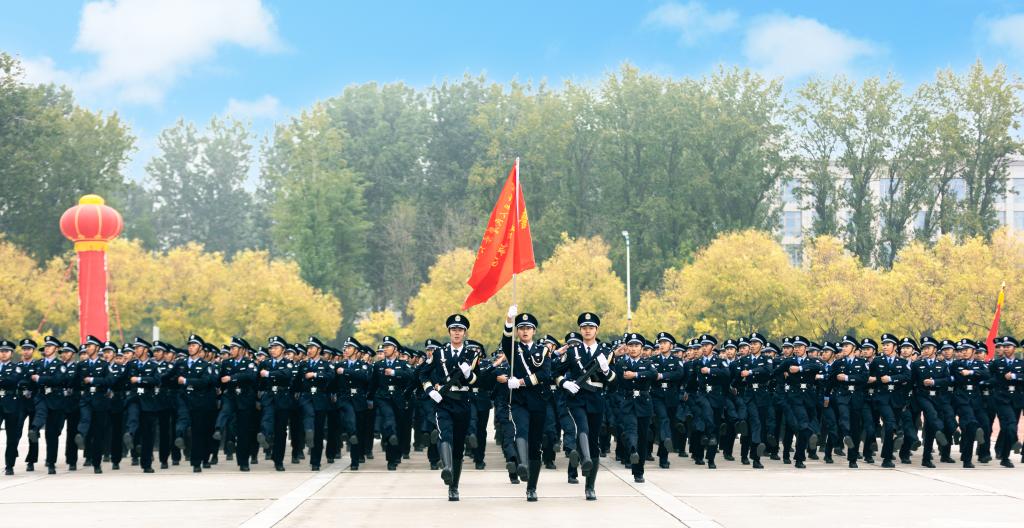 10月8日上午,警察大学2022级新生军训汇报演练暨开学典礼在标准训练场隆重举行。2022级新生精神饱满、斗志昂扬,以铿锵的步伐、标准的动作、嘹亮的呼号汇报军训成果。学校党委书记牟玉昌发表讲话,校长马金旗检阅了全体新生,党委副书记房凌春主持汇报演练,副校长潘清义宣布获奖单位名单。新生代表韩秉纯、教师代表王福柱分别表态发言,学校领导、教职工及师生代表参加开学典礼,广州校区师生收看了网络直播。