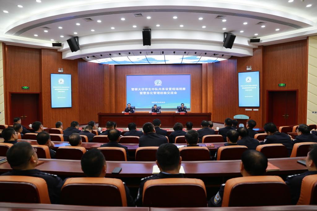 现场观摩环节,参会人员观摩了学校智慧警务学院十一队、十二队的学生宿舍内务设置,现场听取学管干部关于队伍日常管理的工作汇报。经验交流环节,参会人员观看了学校警务化管理示范片,6名学管干部代表分别从落实警务量化管理、狠抓队伍纪律作风、着力强化政治引领、开发运用互联网思维、紧密结合专业特色、融注真情严管厚爱等六个不同角度,交流分享了本单位开展队伍警务化管理的方法经验,案例鲜活、反响强烈、成效明显。