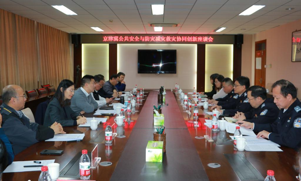 会议邀请公安部安全与警用电子产品质量检查中心主任胡志昂研究员、北华航天工业学院副校长刘景旺教授、天津消防研究所刘晅亚研究员等7位专家围绕京津冀公共安全与防灾减灾救灾协同创新工作深入进行了座谈交流。与会专家围绕重大自然灾害监测预警与风险防控、安全生产风险监测预警与事故防控、应急救援与综合保障等公共安全与防灾减灾救灾领域的关键内容,就如何在关键技术攻关、装备研发和应用示范等方面加强京津冀协同创新,如何实现重大自然灾害与公共安全事件精准监测、精确预警、精细防控、高效救援,支撑平安河北建设等方面进行了深入探讨。