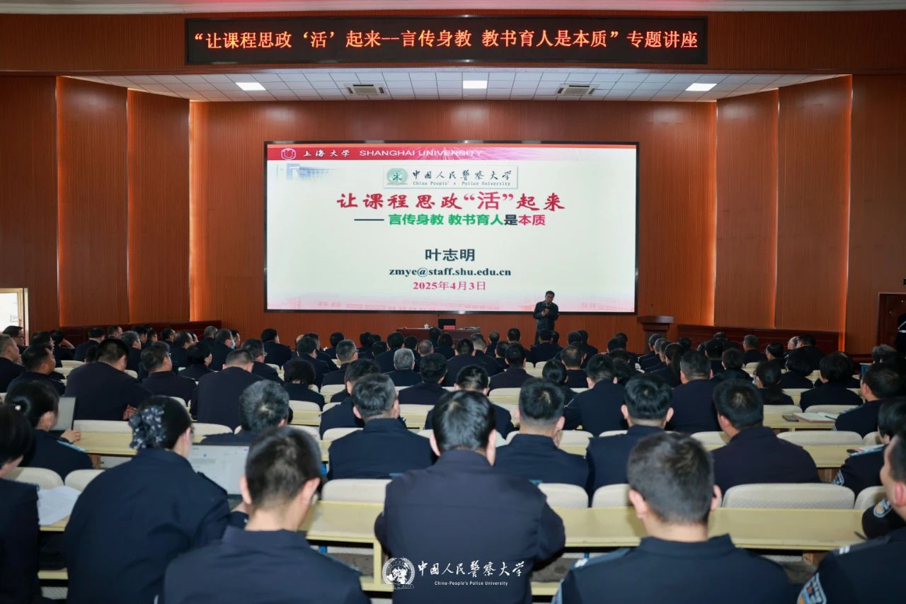 为落实立德树人根本任务、提升教师思政教学能力,4月3日,警察大学邀请上海大学原副校长叶志明教授以“让课程思政‘活’起来——言传身教,教书育人是本质”为题作专题报告。校领导、学校各部门负责同志、无课教师及学管干部聆听报告。广州校区线上参会。
