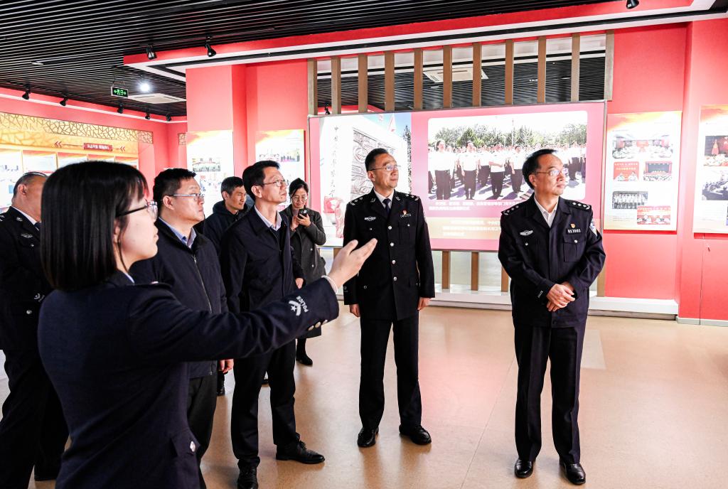 调研组先后参观了警察大学校史馆、礼堂、图书馆,考察了部直属机关党校宿舍、教室、餐厅等硬件设施,听取了有关情况介绍。参观结束后,张立勋详细介绍了部直属机关党校的基本情况、主要做法、下步打算,特别是结合党的二十届四中全会审议通过的《中共中央关于制定国民经济和社会发展第十五个五年规划的建议》,提出要“坚持一个指引、把握两大重点、提升三大能力、做实四项任务,实现一融双高”的办学思路和工作目标,为警察大学和部直属机关党校融合发展、一体建设指明了发展方向。黄晓明对警察大学多年来对部直属机关党校给予的支持表示感谢,并就落实部党委关于党校建设发展要求提出了建议。