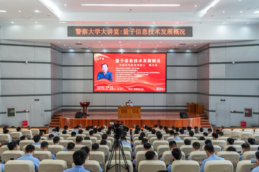 6月12日,中国科学院郭光灿院士一行应邀做客警察大学大讲堂,为我校师生作了题为“量子信息技术发展概况”的学术报告,马金旗校长会见了郭光灿院士一行,报告会由副校长吴立志主持。