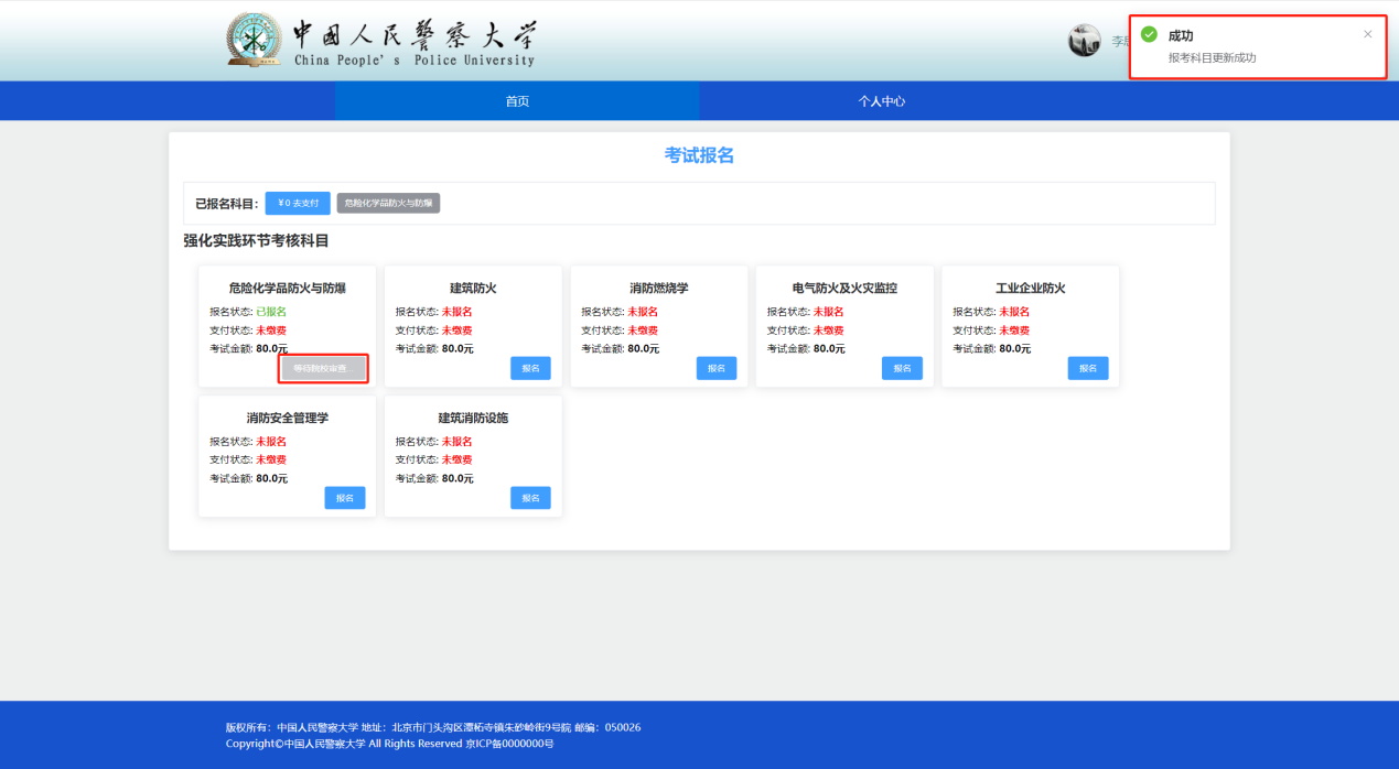 5.5点击报名后会等待试点院校审核。等待审核状态时,报名科目按钮会变为灰色。