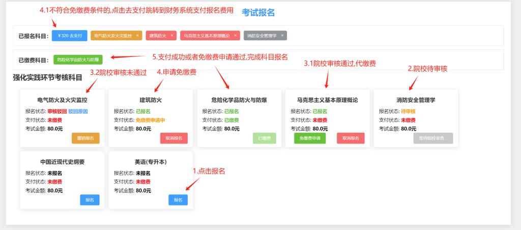 免缴费报名管理功能:审核本校考生考试报名的免缴费申请。