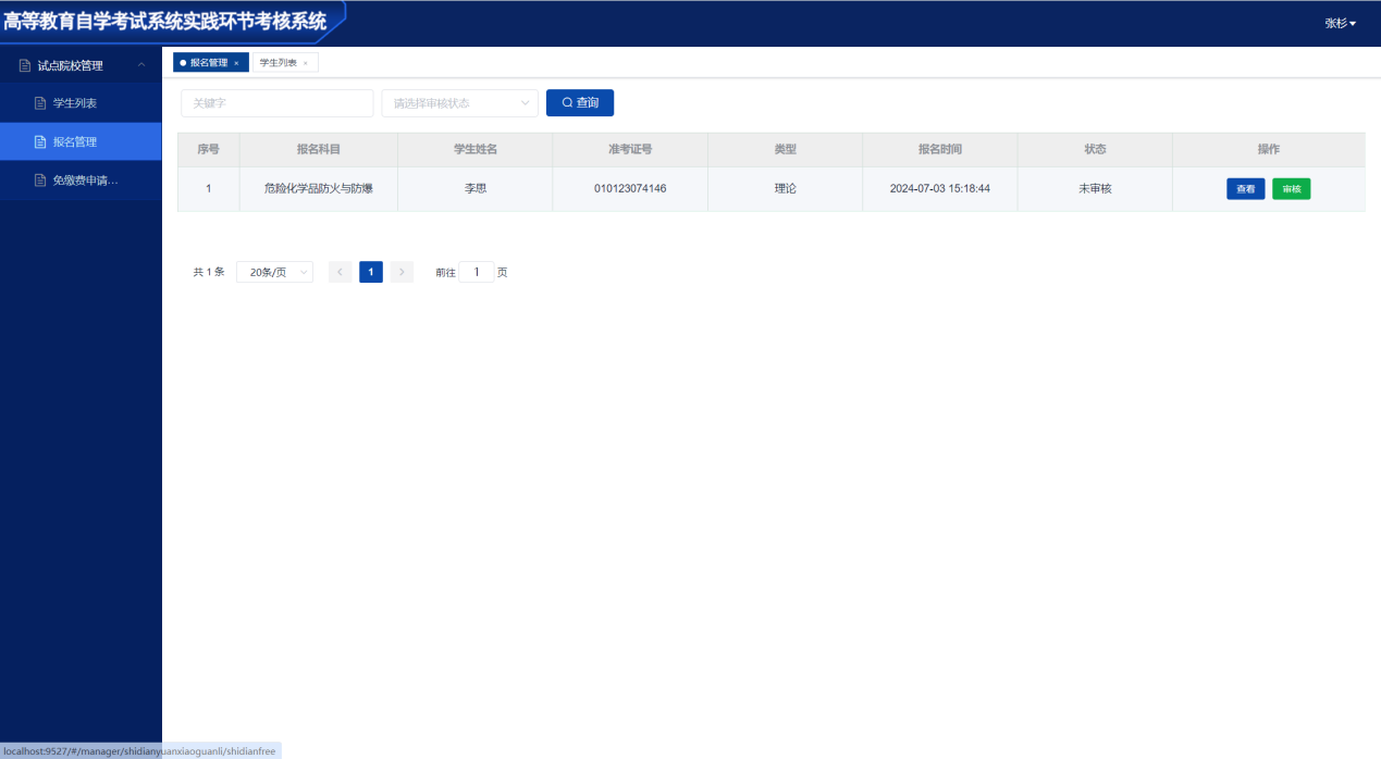 报名审核管理功能:审核本校考生的考试报名申请;