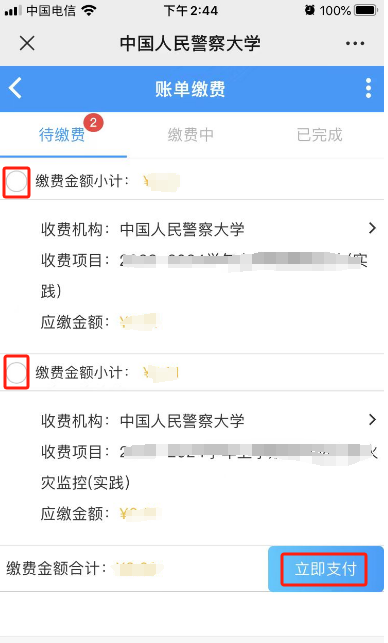 2.缴费页面中的“账单缴费”链接与本次报名缴费无关,请忽略。