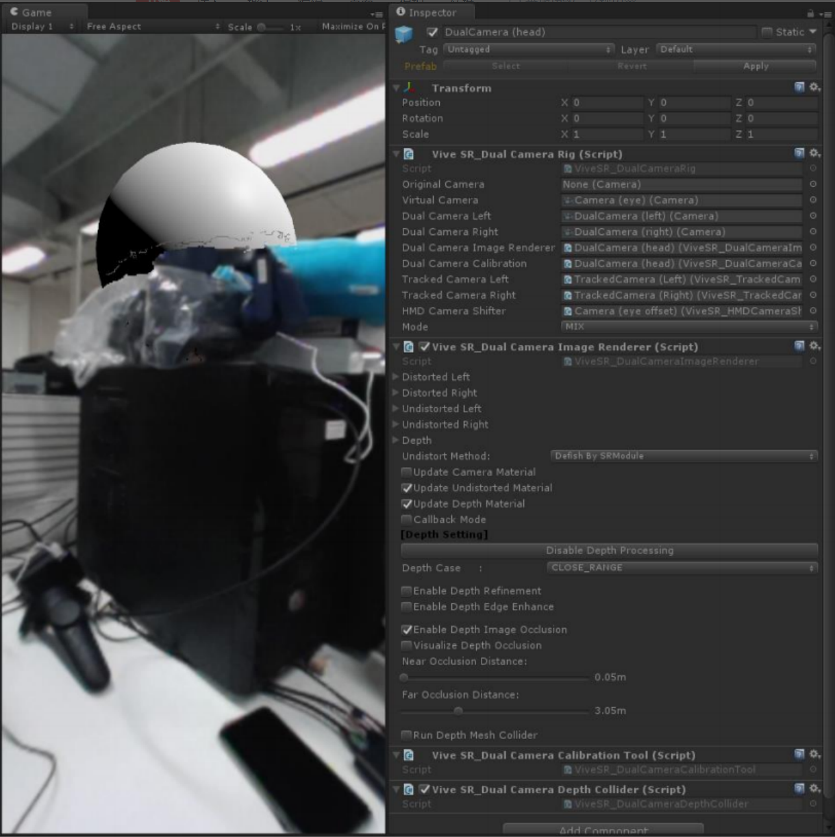 4. 打开 ViveSR\Scenes\Sample 中的示例场景