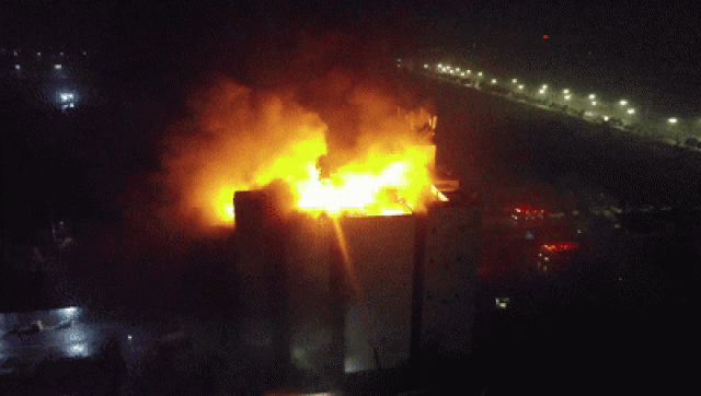 “我刚刚接到一名工人电话,说他被困在三楼左侧的厕所里,你们赶紧救救他。”现场,一个工厂员工找到了新元大道特勤消防救援站副站长刘佳明,表示一名在库房值班的仓管员被困火场,由于通往地面的通道已被大火和浓烟封堵,仓管员无法从安全出口逃生,只好退回3楼左侧仓库厕所,用拖把布堵住门缝,等待救援。