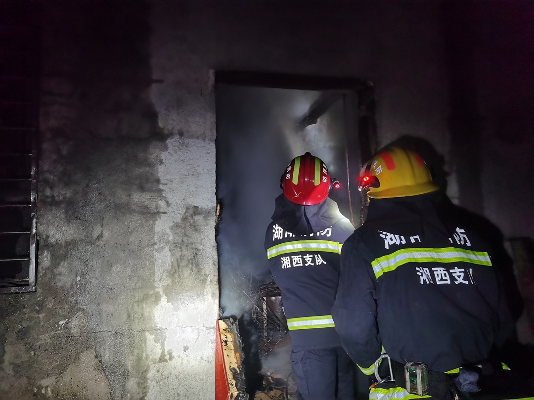 “凤凰县沱江镇白岩村一民房不明起火,无人员被困,请求救援。”8月2日23时52分许,湖南省凤凰县沱江消防救援站接到报警后,站长李清泉带队,出动2辆消防车、14名指战员,迅速赶赴现场进行救援。