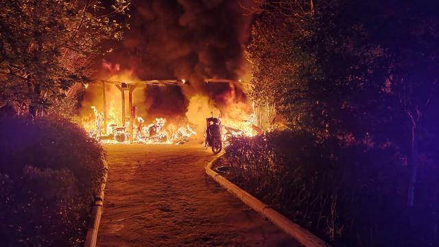 2月28日凌晨2时59分,南昌市奥克斯盛世华庭小区一户外电动自行车棚发生火灾。