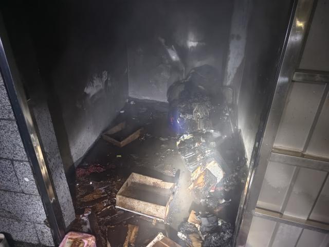消防救援人员到达后,经过侦查发现起火建筑为一栋7层楼房,着火点为一楼的一间柴火间,柴火间内主要燃烧物质为纸箱、书籍、桌子等杂物,只见着火房内火光冲天,烟雾不断从柴火间内冒出,柴火间外还停放了几辆电动车,确认无人员被困。根据现场情况,消防救援人员立即出1支水枪控制火势。19时35分,经过10分钟的扑救,火被扑灭。