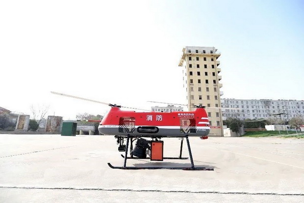 据了解,该项目研发的消防无人机灭火救援综合装备集成了电动侦查无人机、大载重无人直升机、承载运输车辆、灭火救援模块,具备高空灭火、火场侦察和救援等功能。借助纵列式双旋翼燃油动力无人机载重量大、航时长、抗后座力能力强等特点,搭载专用灭火装置和高效灭火药剂,可实施对高层建筑有窗房间火势的精准扑灭或快速压制。其弥补了举高消防车作业展开时间长、登高作业场地固定、灵活机动性差等不足,与内攻消防救援人员和建筑室内消防设施紧密配合,将大大提升灭火救援作战效率。