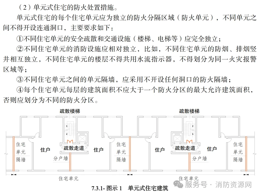 石峥嵘:可以认为,单元式住宅建筑的火灾可控制在发生火灾的住户或住宅单元内,其他单元不会马上受到火灾威胁,有足够的安全疏散时间。防烟排烟系统的主要功能是保证人员安全疏散,主要满足火灾初期的安全疏散要求,因此只需要启动火灾所在单元的机械加压送风系统。 需要注意的是,当火灾发生时,安全疏散是全楼同步的,因此火灾声光警报和应急广播应全楼启动。问题: 对于单元式住宅建筑,火灾时是否需要开启所有单元的加压送风机和常闭加压送风口?是否需要开启全楼的火灾声光警报和应急广播?回答:对于单元式住宅建筑,火灾时需要开启全楼的火灾声光警报和应急广播,但只需开启火灾所在单元的加压送风系统。对于前室的常闭式加压送风口,应开启单元内着火层及其相邻上下层前室(包括疏散楼梯间前室、消防电梯前室、合用前室等)的常闭加压送风口,同时开启相应的加压送风机。分述如下:一、机械加压送风系统的联动控制以防火分区为单位,但单元式住宅通常不需要划分防火分区。《消防设施通用规范》GB 55036—2022第11.2.6条规定“机械加压送风系统应与火灾自动报警系统联动,应联动开启火灾所在防火分区的全部疏散楼梯间的加压送风机和常闭加压送风口”,该规定要求机械加压送风系统的联动控制以防火分区为单位。该规定与火灾自动报警系统的划分原则一致,火灾自动报警系统的报警区域通常以防火分区或楼层为单位划分。而单元式住宅建筑主要通过单元隔墙和分户墙控制火灾风险,不同住户和住宅单元均为相对独立的防火单元,当每单元每层的建筑面积不大于一个防火分区的最大允许建筑面积时,不需要划分防火分区。实际上,住宅建筑每单元每层的建筑面积通常不会大于一个防火分区的最大允许建筑面积,因此对于单元式住宅建筑,通常不需要划分防火分区。因此,对于单元式住宅建筑来说,消防联动控制无法以防火分区为单位划分。 二、单元式住宅建筑机械加压送风系统的联动控制以住宅单元或楼层为单位,火灾发生时,无需启动其他单元的机械加压送风系统。(1)在单元式住宅建筑中,不同住户、单元之间分别通过分户墙、单元隔墙(防火隔墙)完全分隔,互不相通。可以认为,单元式住宅建筑的火灾可控制在发生火灾的住户或住宅单元内,其他单元不会马上受到火灾威胁。(2)单元式住宅建筑火灾自动报警系统的报警区域不会跨越住宅单元,并通常以单元楼层为单位划分。防烟排烟系统的主要功能是保证人员安全疏散,满足火灾初期的安全疏散需求。考虑一个单元的火灾不会马上威胁其他单元,其他单元有足够的安全疏散时间,因此,火灾发生时,可启动火灾所在单元的机械加压送风系统,无需启动其他单元的机械加压送风系统。依据现行国家标准《消防设施通用规范》GB 55036、《建筑防烟排烟系统技术标准》GB 51251等的规定,联动控制要求如下:当某单元火灾确认后,应能在15s内联动开启以下部位的加压送风口和加压送风机:① 应开启该住宅单元所有疏散楼梯间的全部加压送风机;② 应开启该住宅单元内着火层及其相邻上下层前室(包括疏散楼梯间前室、消防电梯前室、合用前室等)的常闭加压送风口,同时开启相应的加压送风机。③ 需要注意的是,当火灾发生时,安全疏散是全楼同步的,火灾声光警报和应急广播等应全楼启动。 三、单元式住宅的防火处置措施要求。实际应用中,应明确单元式住宅的基本防火处置措施要求, 不满足要求者不得作为单元式住宅处置。以下为单元式住宅的基本防火处置措施要求(引自《建筑防火通用规范-解读及应用》第264~265页):