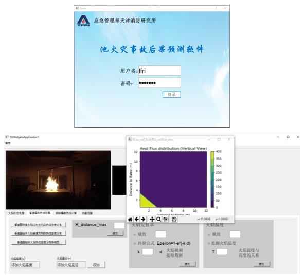 针对石油化工多储罐火灾事故场景,构建了多罐池火燃烧垂直火焰分层辐射预测模型和倾斜火焰辐射预测模型,开发了池火灾事故后果预测软件,其优势及先进性在于可对多储罐火灾现场关键危险性参数进行实时动态分析,具体地可对事故现场火焰形态(火焰高度、火焰直径、火焰倾斜角)进行实时处理,对多储罐燃烧时火焰融合场景和火焰倾斜未融合场景的火焰辐射热流进行动态预测,进而反推多储罐火灾事故的伤害范围,为安全距离的设定提供技术指导。