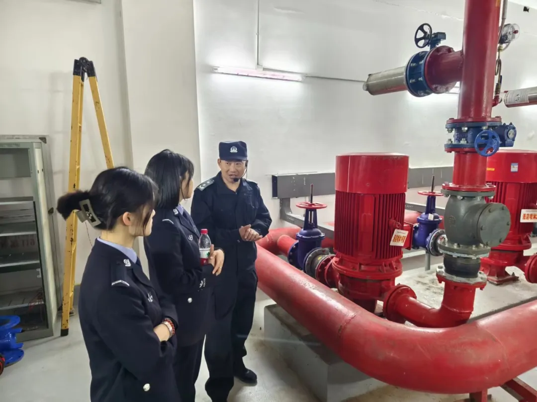 在消防水泵房,同学们实地学习了各类消防设备的运作流程,感受到了消防工作的严密与复杂。随后来到消防中控室,通过对控制室内各种监控系统和通讯设备的操作学习,同学们对如何在紧急情况下进行有效的信息收集和指令发布有了更深刻的理解。