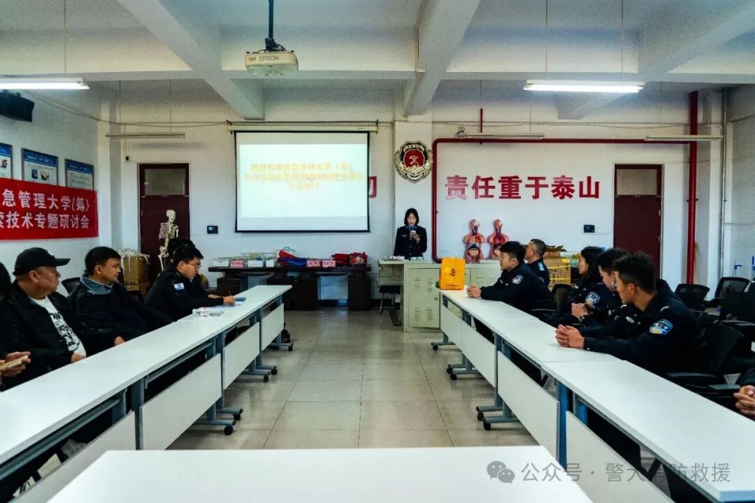 室外演练结束后,双方成员在消训楼301教室开展研讨交流。社团负责人分别介绍了各自的特色训练与发展历程,并对活动进行复盘总结。