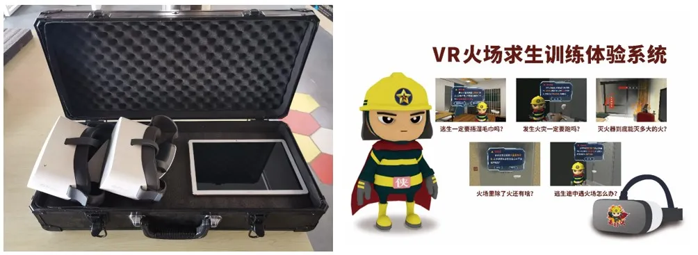 天津所自主研发的VR火场求生训练体验系统、系列应急消防宣教演练装备箱、MR灭火训练考评系统、《STEAM系列消防科学读本》等科普成果已在天津市上海道小学、华苑模范小学、西青实验小学、阳光小学和逸阳小学等学校进行了示范应用。