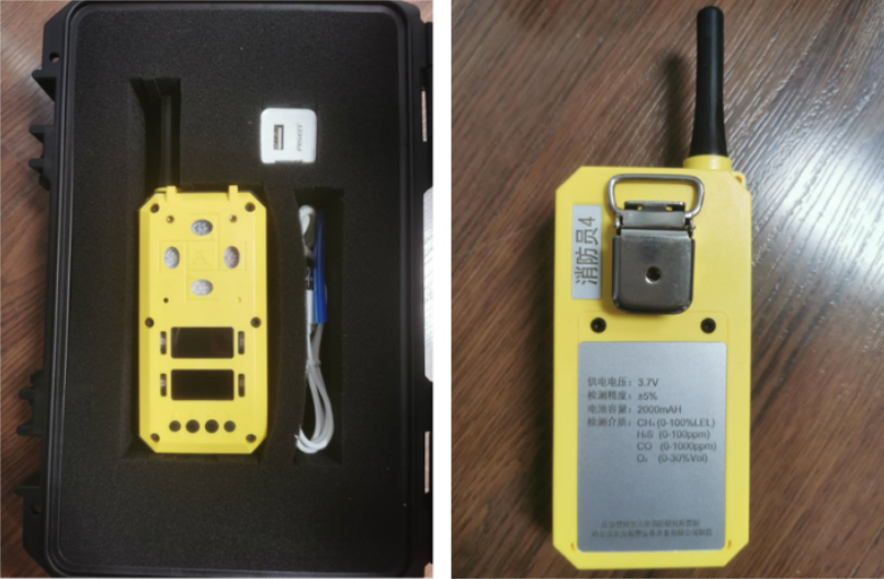 该成果兼具气体侦检和呼救器功能,作为消防救援人员执勤必须配备的单兵装备。呼救器采用声光电技术研发,由时钟计时器、微动传感电路、预警强制自动/手动控制器,声调钟电路、方位指示电路、蜂鸣器输出电路、欠压警示电路组成。具有自动报警、强制报警、方位指示、低电压显示等多种功能。具有轻巧便携、功能复合、长续航、防水防爆等优点。气体侦检可复合检测H2S、CH4、CO、可燃气等四种有毒有害、易燃易爆气体。装备外观优美、设计合理、重量轻,在人员倒地或接触可检测气体后发出声光报警。
